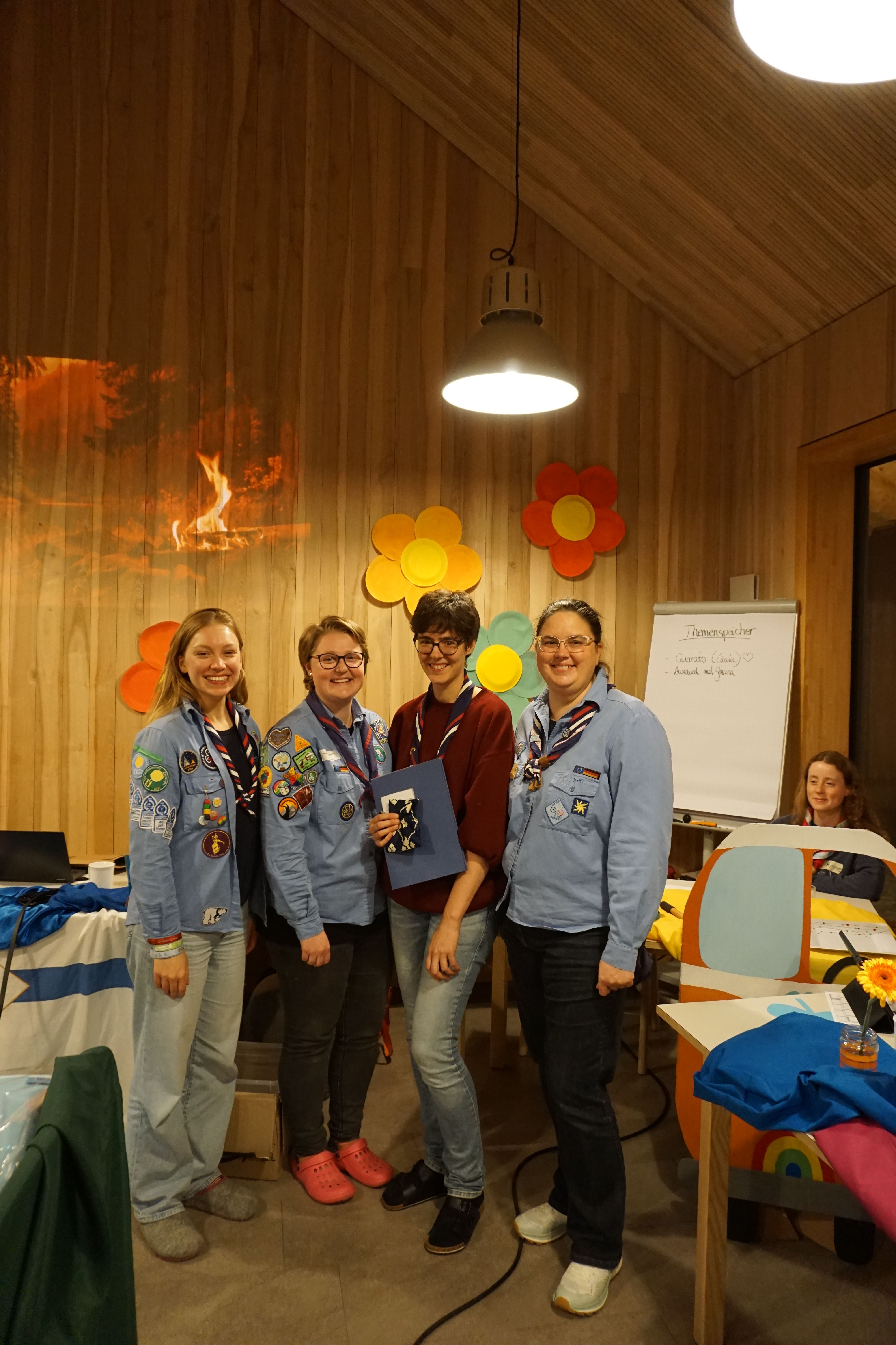 Besonders freute sich die Versammlung über zwei neue anerkannte Leiterinnen – Mia K. und Laura N. – sowie über eine Ehrenauszeichnung für herausragendes Engagement als Diözesanvorsitzende an Franziska H.,